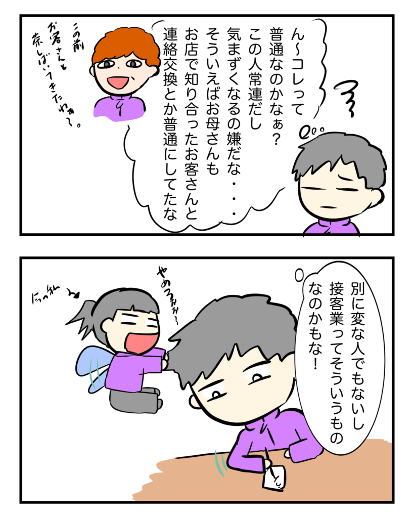 〜男ドラ〜「店での男性客との話」Part1③ 男性客との話Part1 Twitter Facebook はてブ Pocket LINE コピー 2025.12.212025.11.18 スポンサーリンク 当時の私はお客さんとの距離感もわからず、仲良くなるのはお店のためだと思ってました。すんまへん
